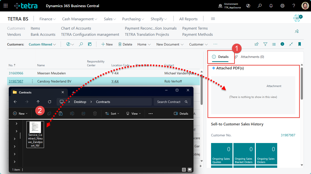 • Open a page in Business Central where the PDF Viewer is available.