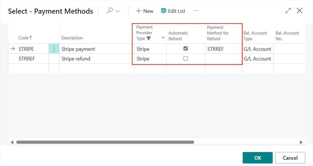 • Payment Method for Refund: Specifies the Payment Method used for automatic Stripe refunds. If empty then the original Payment Method will be used that was on the Posted Sales Invoice